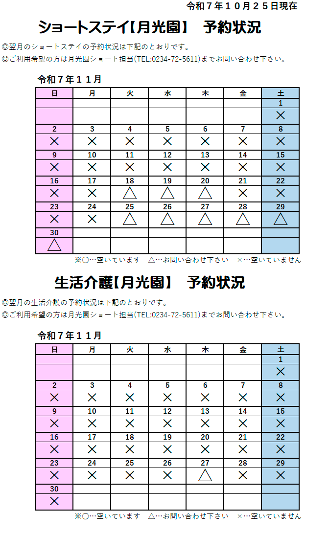 ショートステイ空き情報 ショート・生活介護空き情報[2025年10月25日現在] 2025年10月28日(火) 最新情報 ショート・生活介護空き情報[2025年10月25日現在] ショート・生活介護空き情報[2025年8月25日現在] ショート・生活介護空き情報[2025年7月25日現在] ショート・生活介護空き情報[2025年6月25日現在] ショート・生活介護空き情報[2025年5月25日現在] ショート・生活介護空き情報[2025年4月25日現在] ショート・生活介護空き情報[2025年3月25日現在] ショート・生活介護空き情報[2025年2月25日現在] ショート・生活介護空き情報[2025年1月25日現在] ショート・生活介護空き情報[2024年12月25日現在] 以前の記事へ 法人概要 採用情報 地域貢献活動 情報公開 アクセス イベント リンク