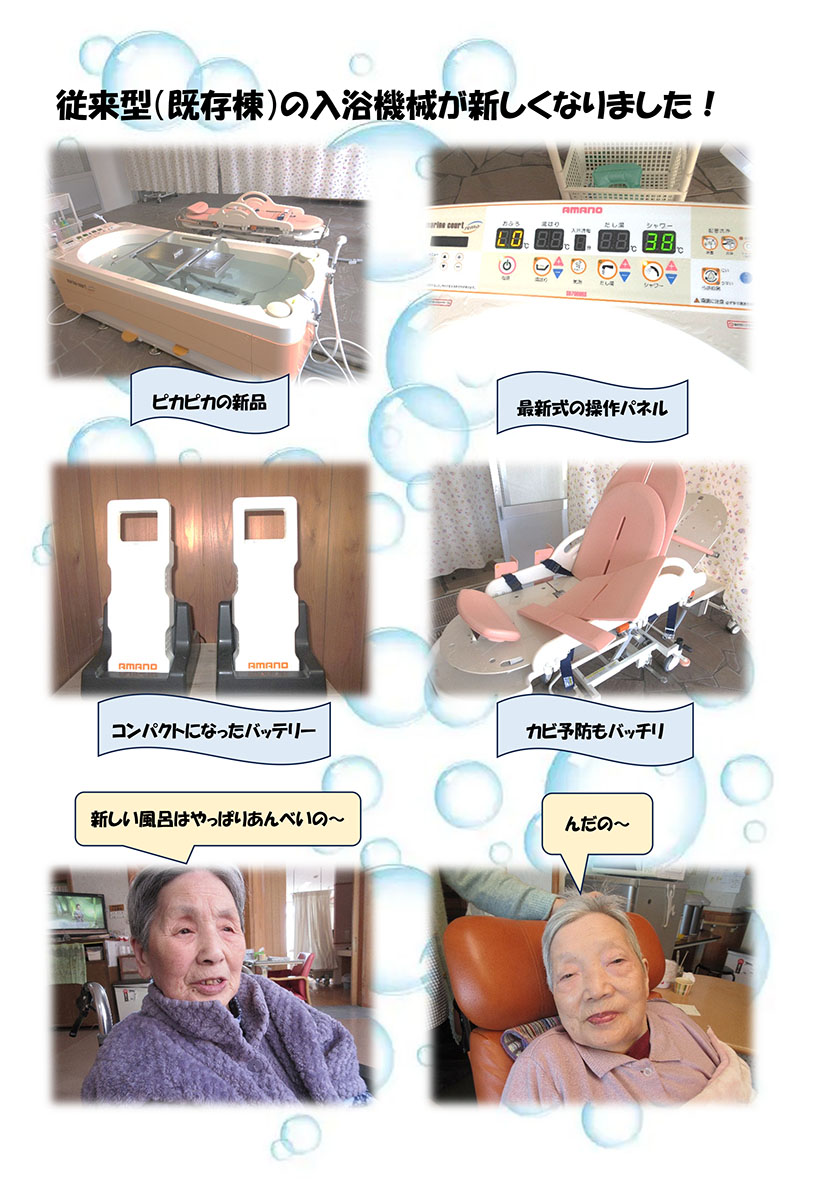 • 従来型(既存棟)の入浴機械が新しくなりました!
