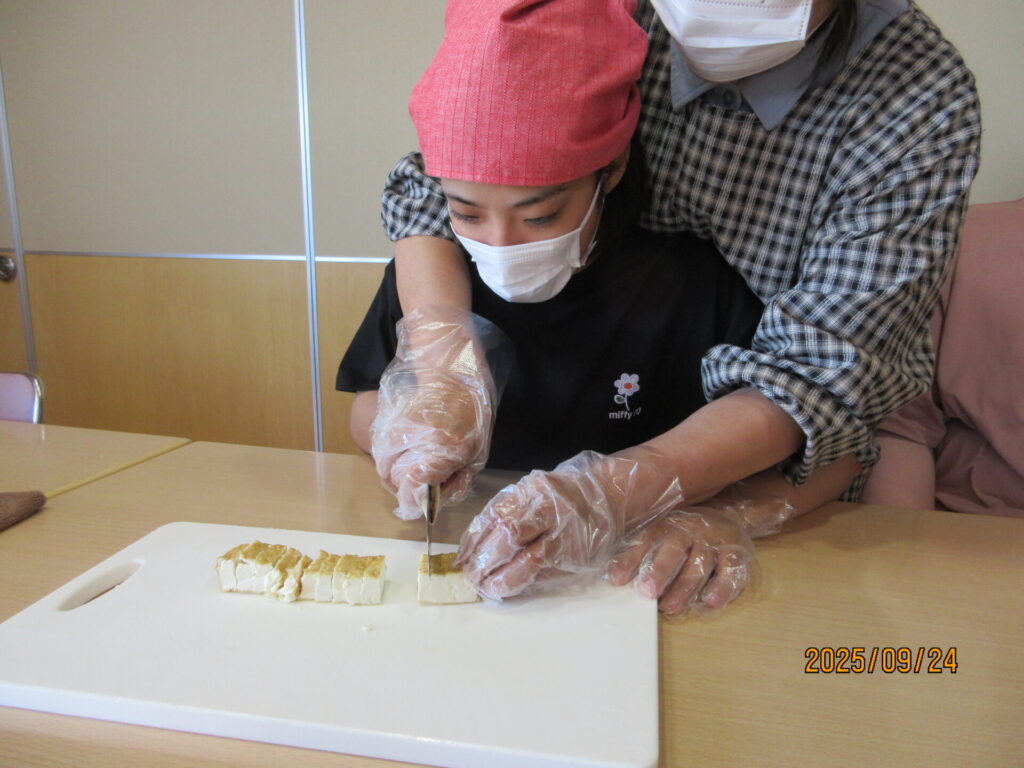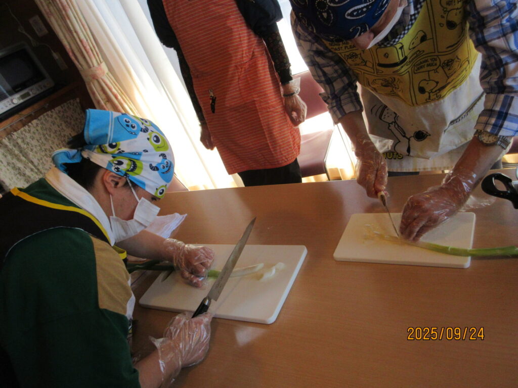 「みんなで作ってみよう!」と、包丁も上手に使って作りました。