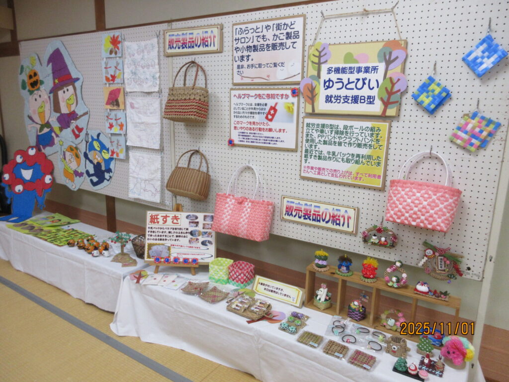 「まるっと遊佐まつり」に、ゆうとぴいの作品・製品を展示しました。