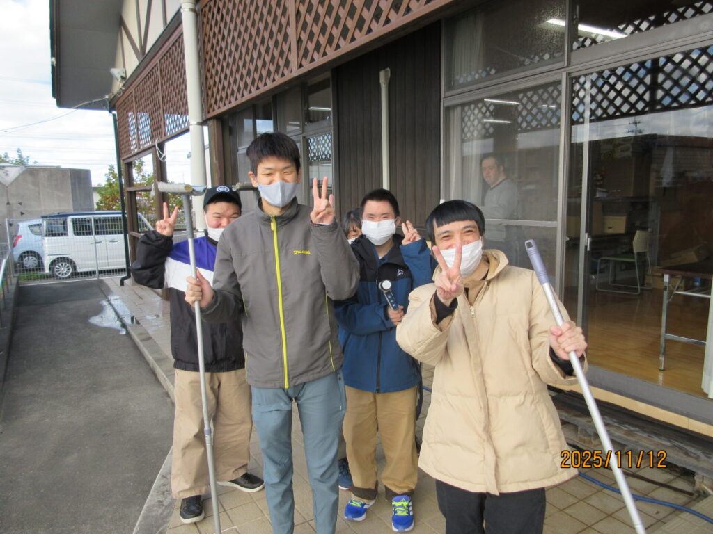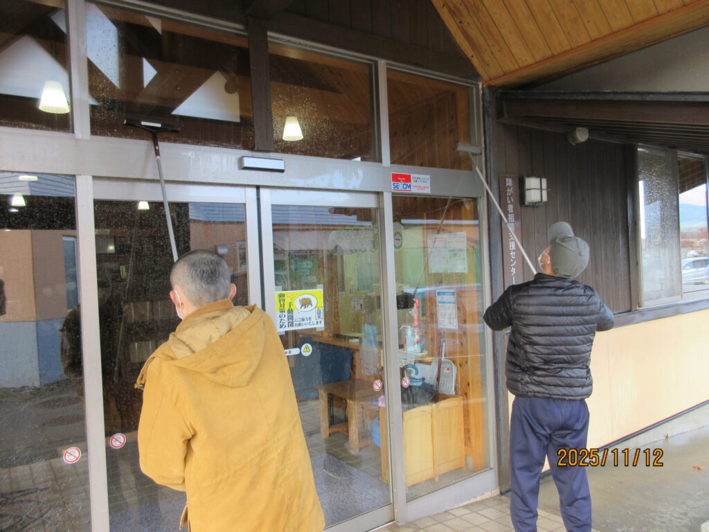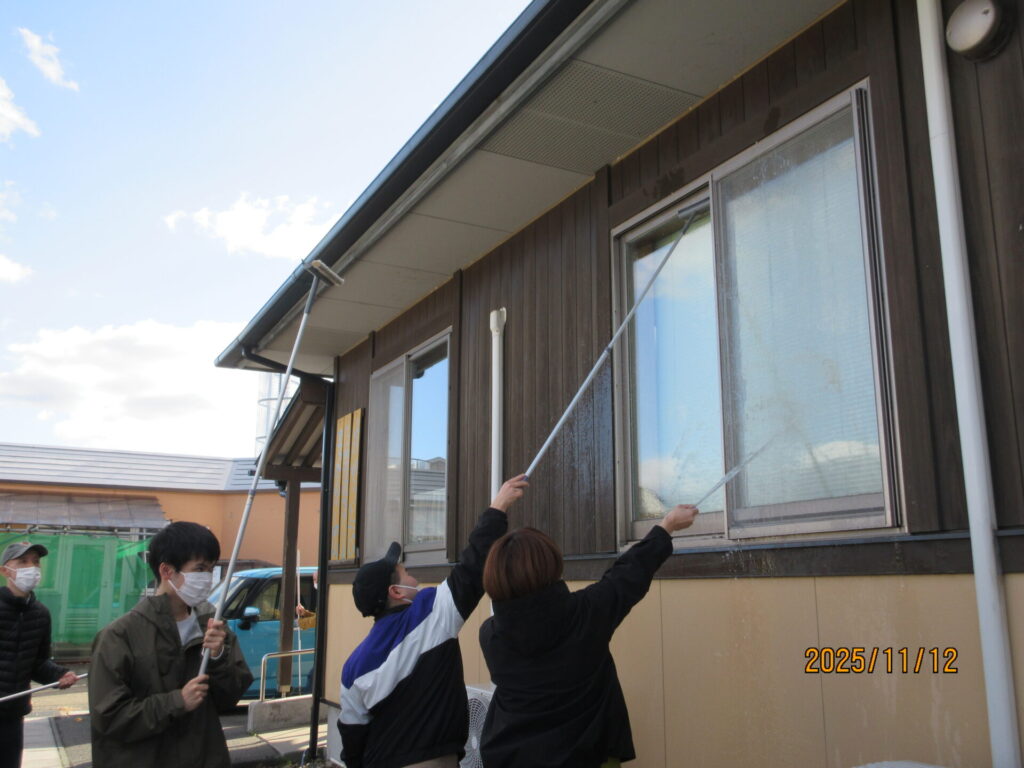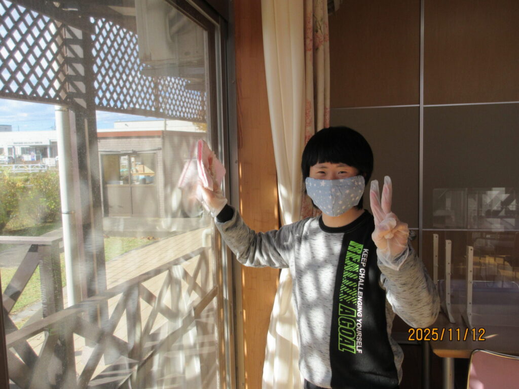 11月中旬、ご家族にも協力していただき、事業所の窓拭き・窓洗浄をしました。
